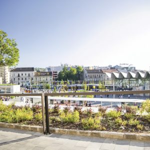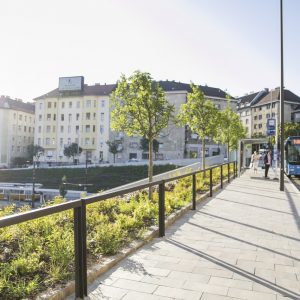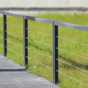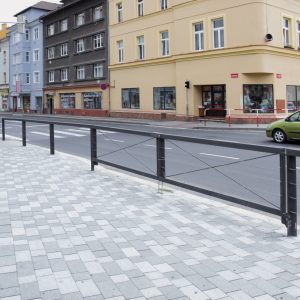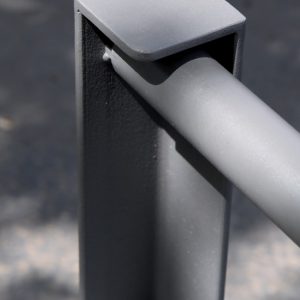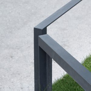 The clean shape of this outdoor railing is based on a combination of L-profiles, which follows the Lot bollard with its design. It offers new possibilities to organize public space. Optically lightweight model with one horizontal rail, multi-element variants which prevent anyone from passing under, or models with a stainless steel cables – all these options allow you to choose the most suitable solution for a given space. The lowered version of this city railing serves as suitable protection for lawns.