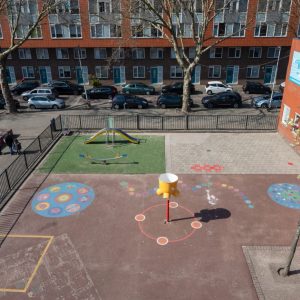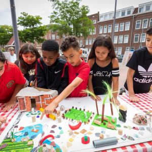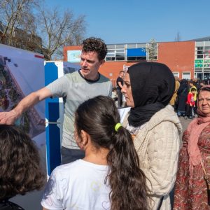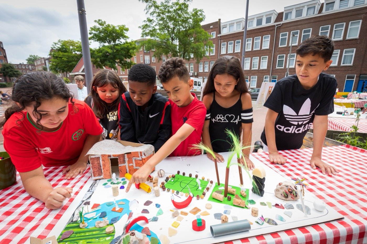 Urban Synergy formed a local advisory group of engaged residents, including people closely connected to schoolchildren and teenage girls and boys. This group was central throughout the project—from selecting participatory tools to mobilizing the neighbourhood. In the early stages, the group mapped qualities and concerns on-site. To reach broader input, 1,500 flyers in five languages were distributed with a survey link. Craft kits encouraged children to design their dream square, and with help from Valentijnschool teachers, large model-making sessions were organised.