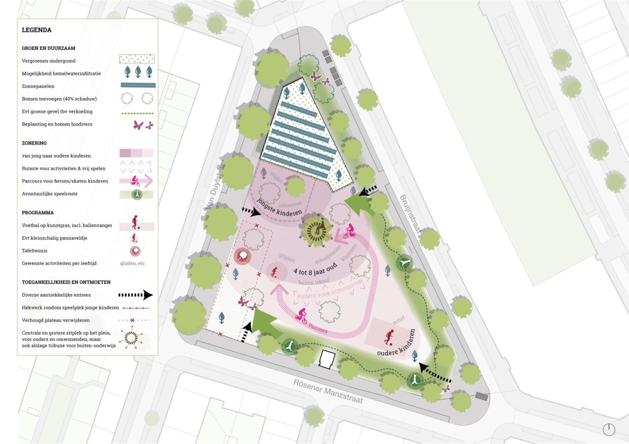 The final design welcomes children, teens, the elderly, neighbourhood initiatives, and schools. Play and rest zones alternate, outdoor education has a place, and small-scale events are possible. Green borders ensure comfort, identity, and safety.
