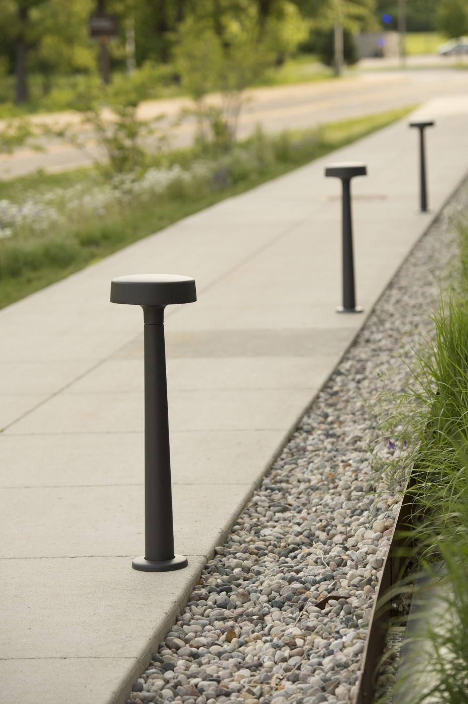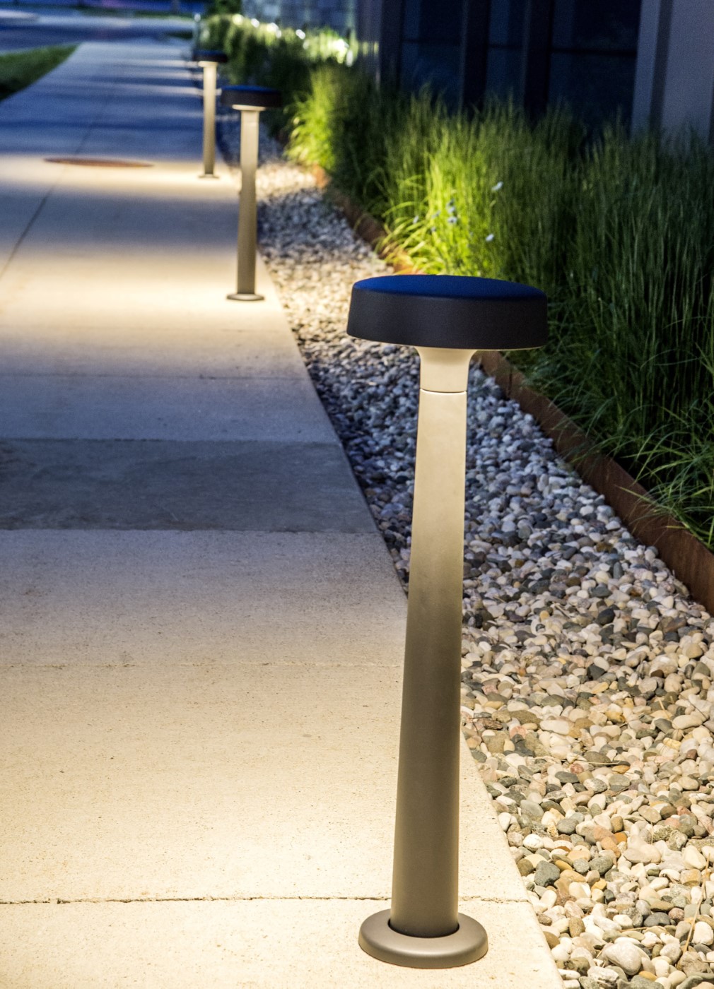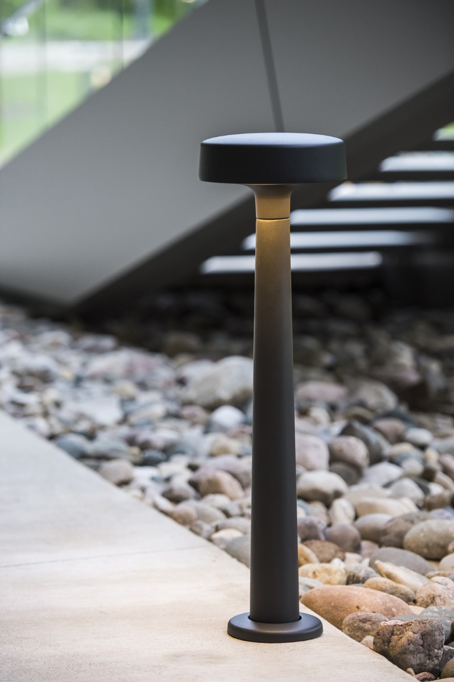 Motive is a sophisticated family of lights that blurs the line between indoor and outdoor lighting to create out-of-the-ordinary settings. Designed by Justin Champaign, Motive celebrates the beauty of illumination and its interaction with architecture, objects, and space. The luminaires’ neutral sculptural form addresses an array of applications for buildings and grounds, pathways, social spaces, and high-profile areas such as art installations and entrances.