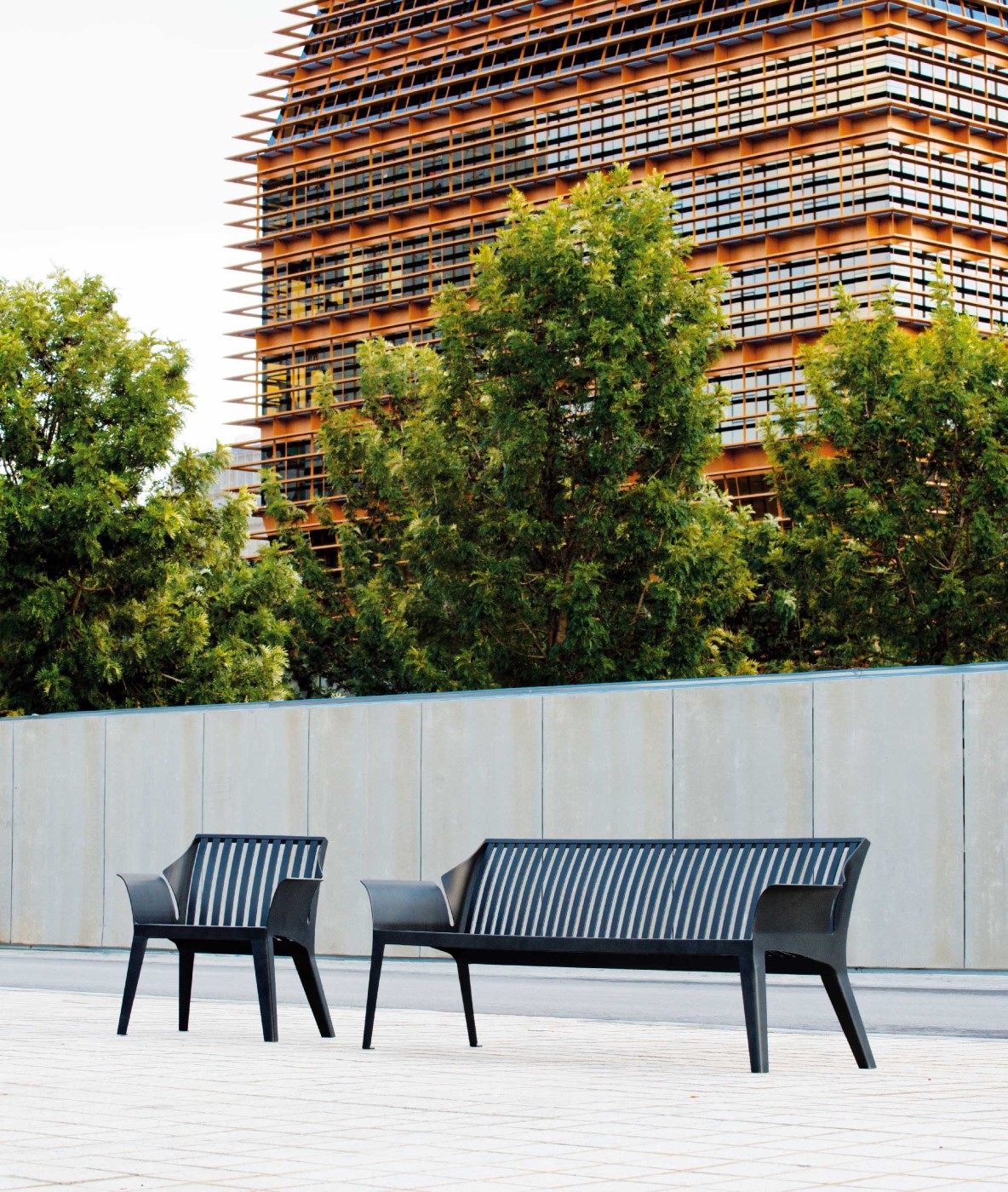 The quality of its conception reminds one of the biggest names in interior design. With the Vancouver bench, Aréa pushes the boundaries of steel even further. Produced in one single piece, the curvature of its feet which extend to the armrest is the fruit of unique know-how. Looking at or sitting on it, the level of completion of its shape produces the feeling of an outdoor sofa.