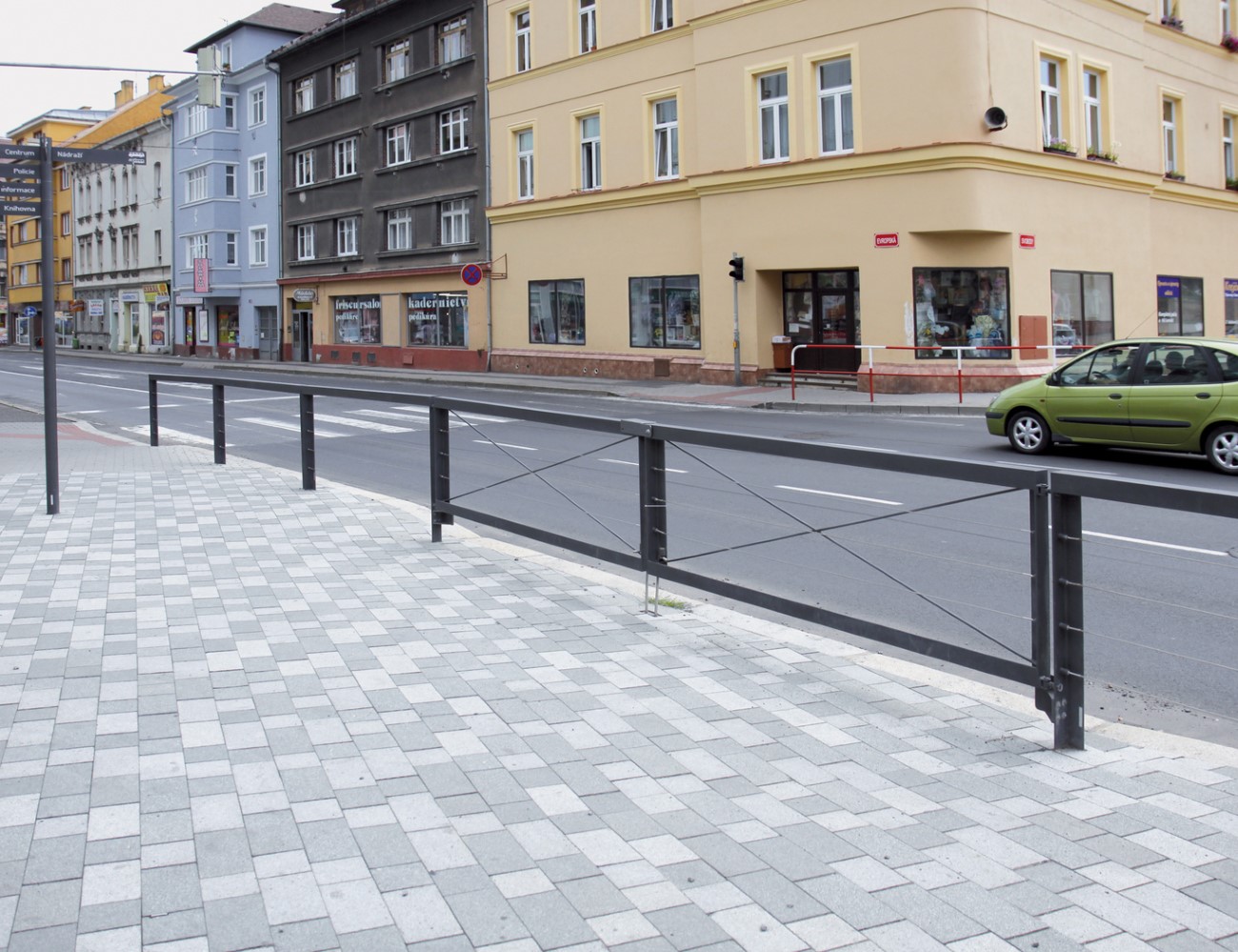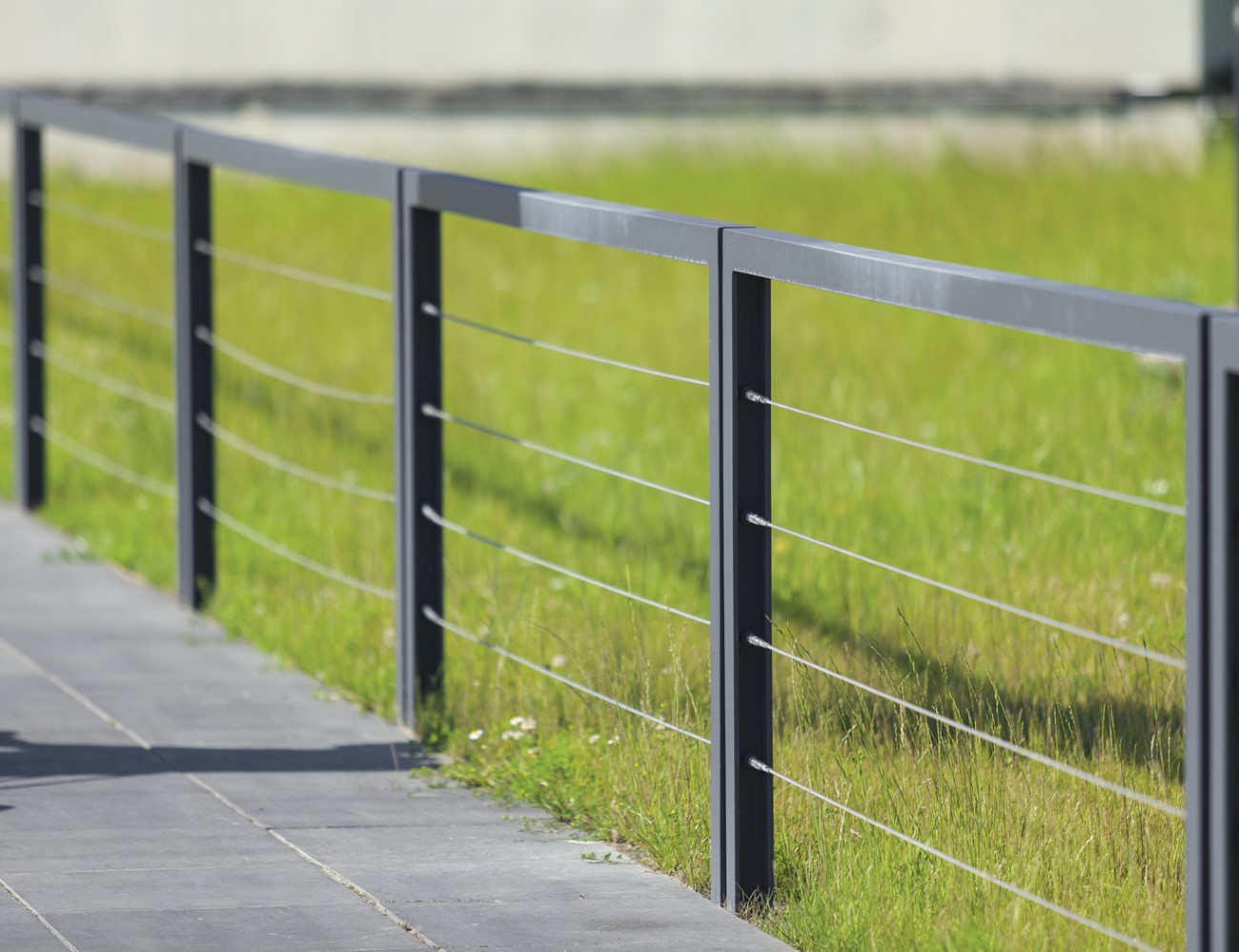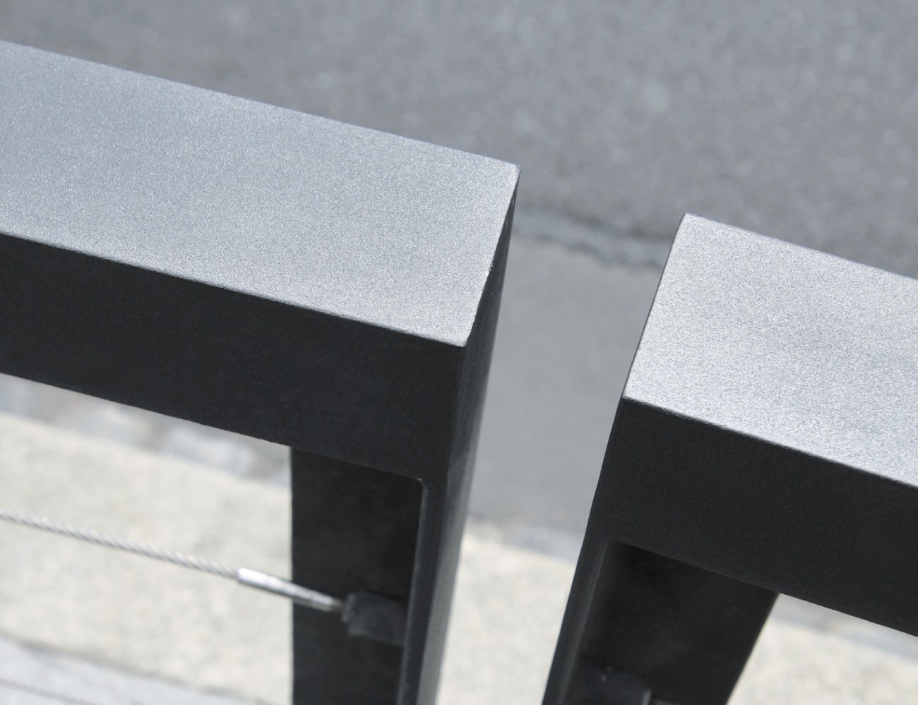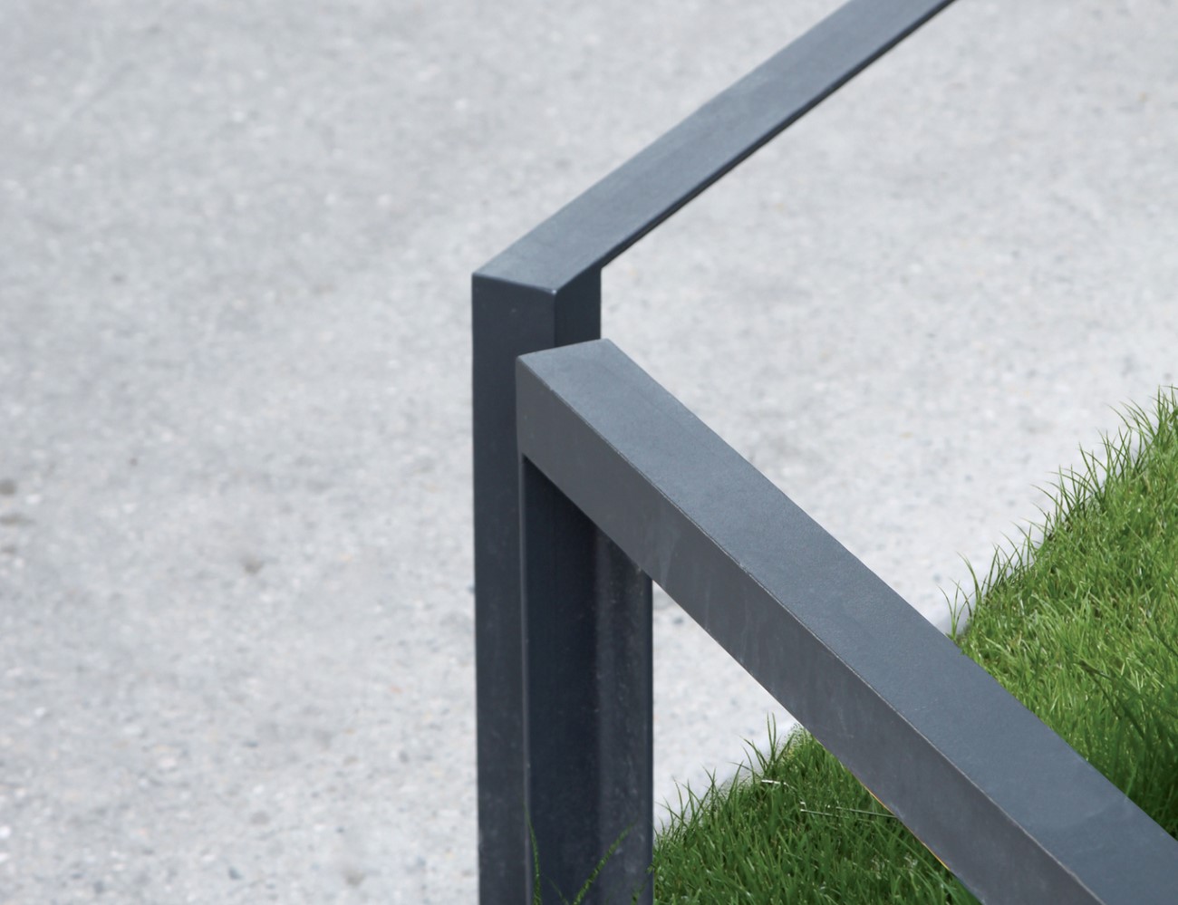 The clean shape of this outdoor railing is based on a combination of L-profiles, which follows the Lot bollard with its design. It offers new possibilities to organize public space. Optically lightweight model with one horizontal rail, multi-element variants which prevent anyone from passing under, or models with a stainless steel cables – all these options allow you to choose the most suitable solution for a given space. The lowered version of this city railing serves as suitable protection for lawns.