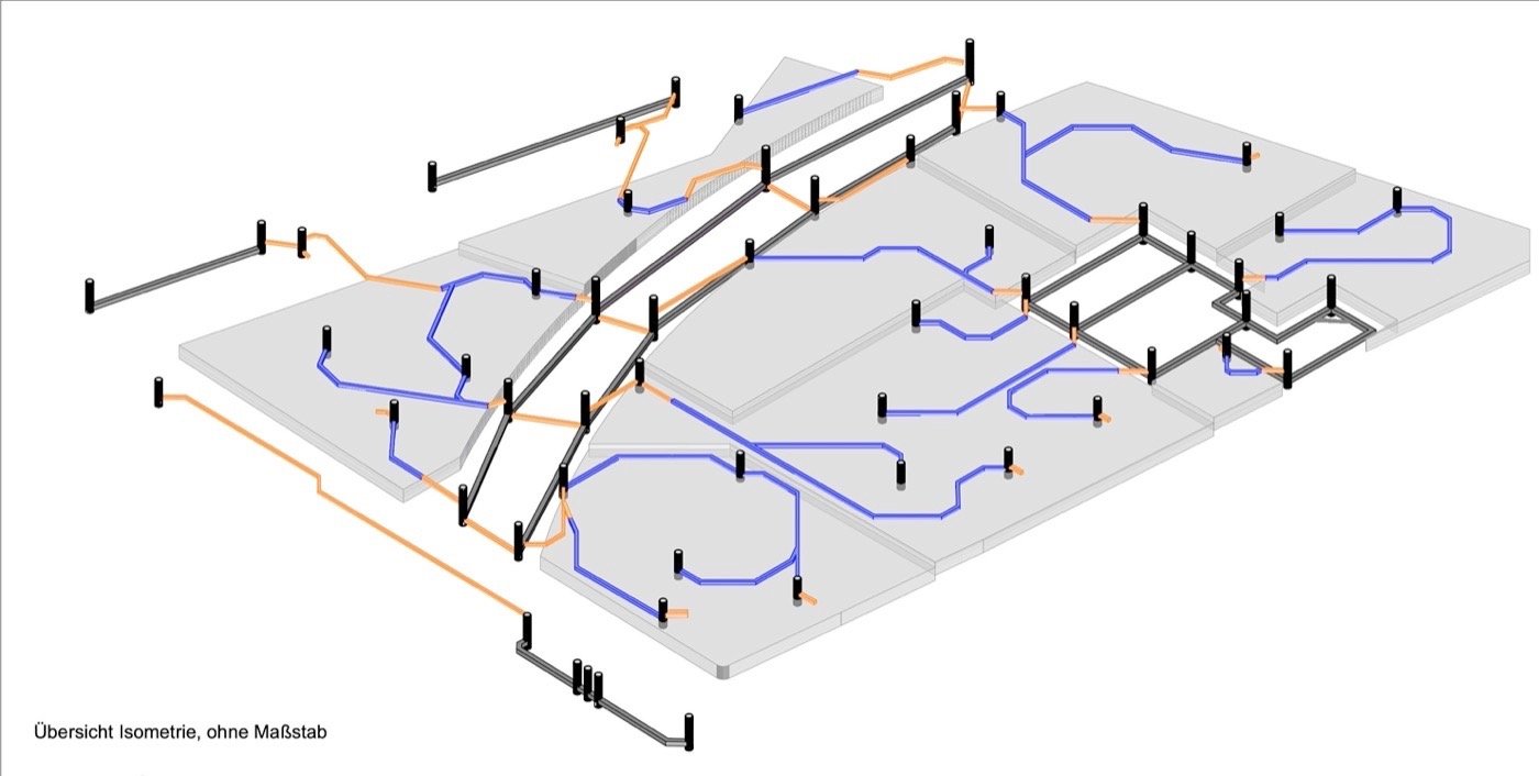 The drainage concept follows the “sponge city” principle. Rainwater is collected and stored locally via underground tree trenches, which prevents flooding and improves the microclimate. The trenches also serve as The adjacent street spaces offer attractive recreational areas thanks to climate-resilient vegetation and promote biodiversity. Rainwater is used specifically to supply the street trees.