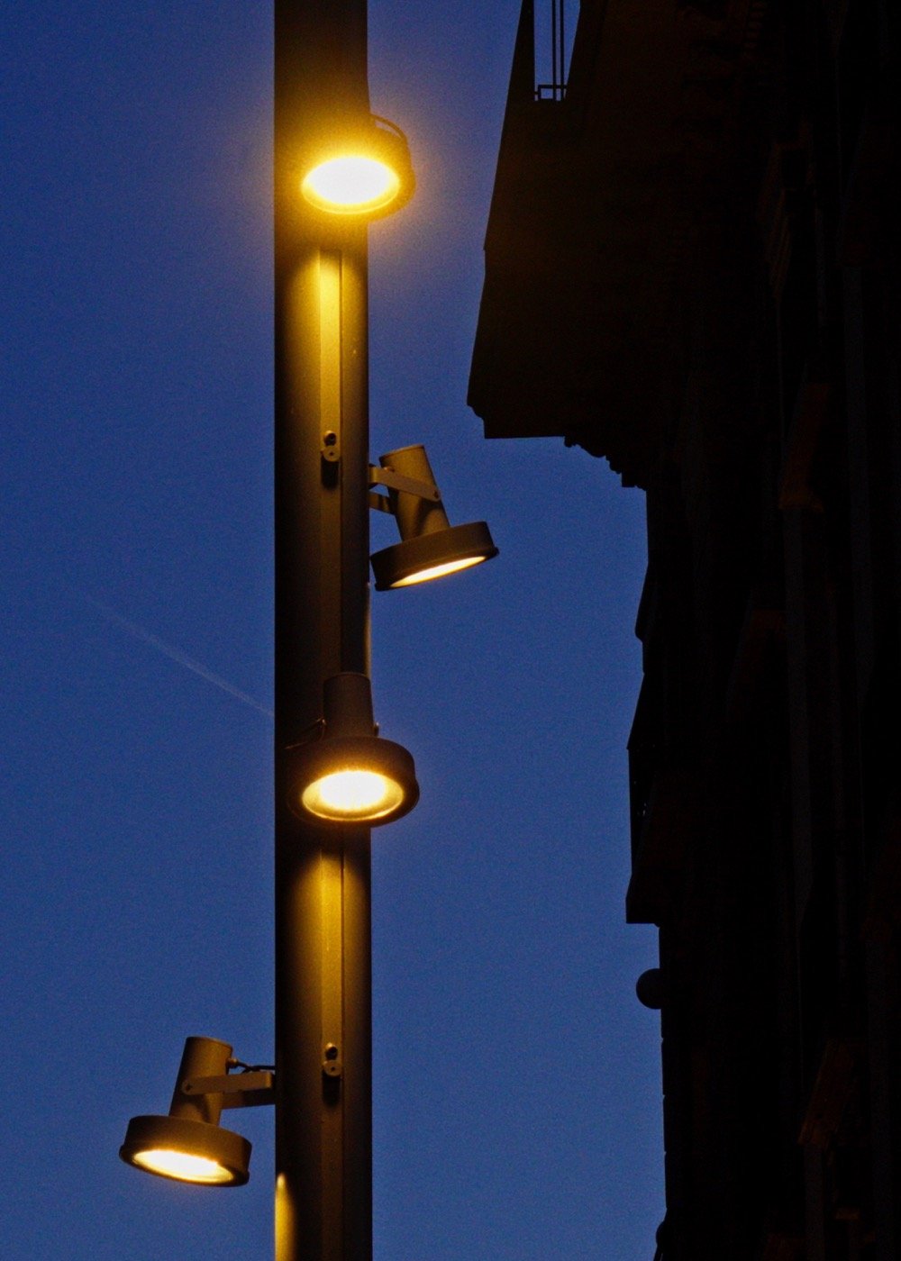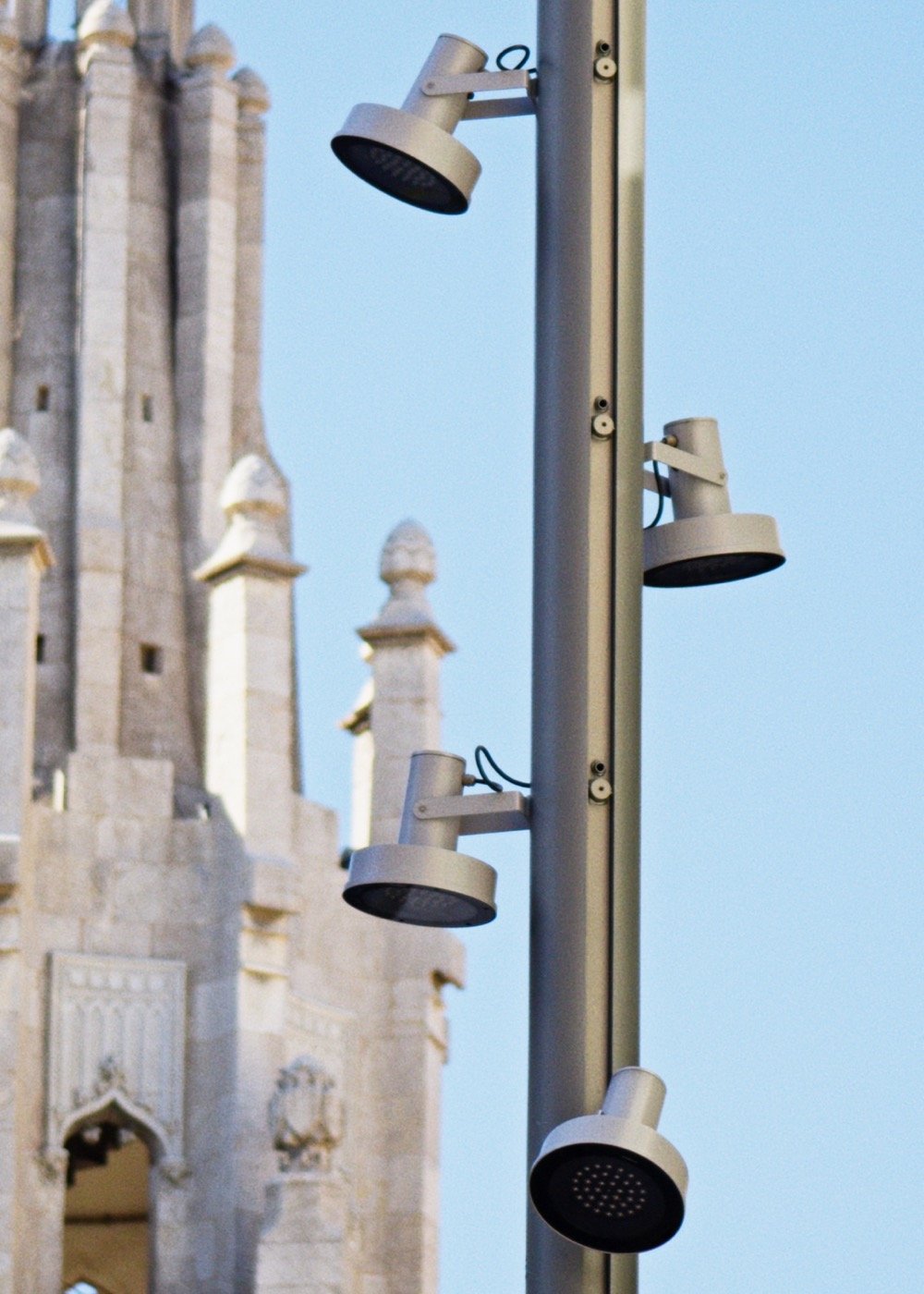 In squares and open spaces, the lighting is complemented by tall columns and adjustable spotlights, allowing the light to be directed where it is needed.