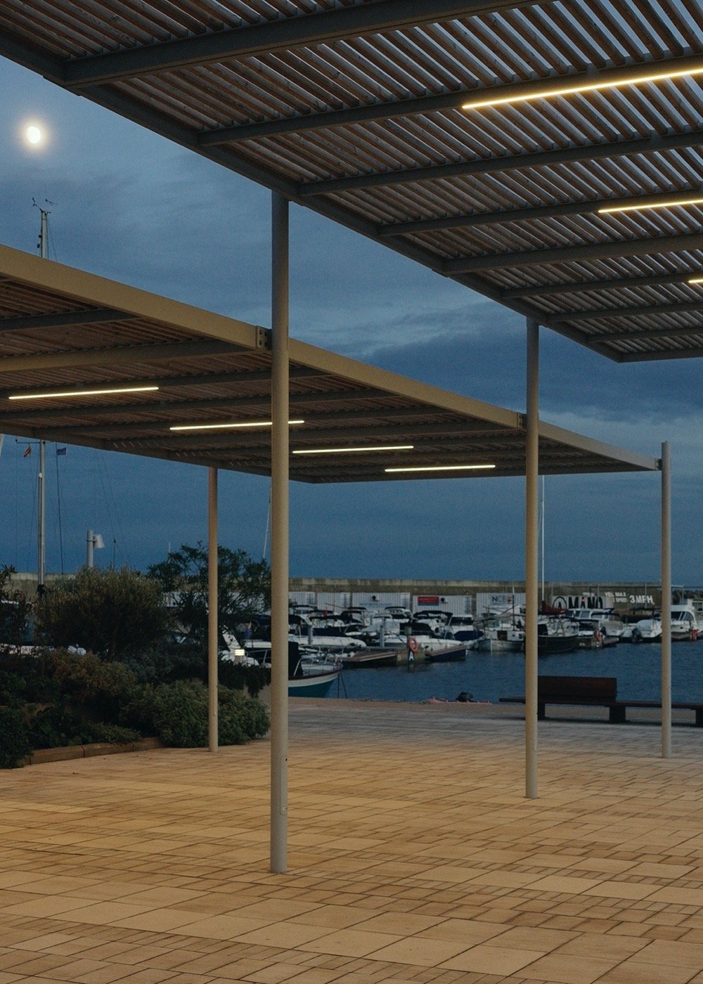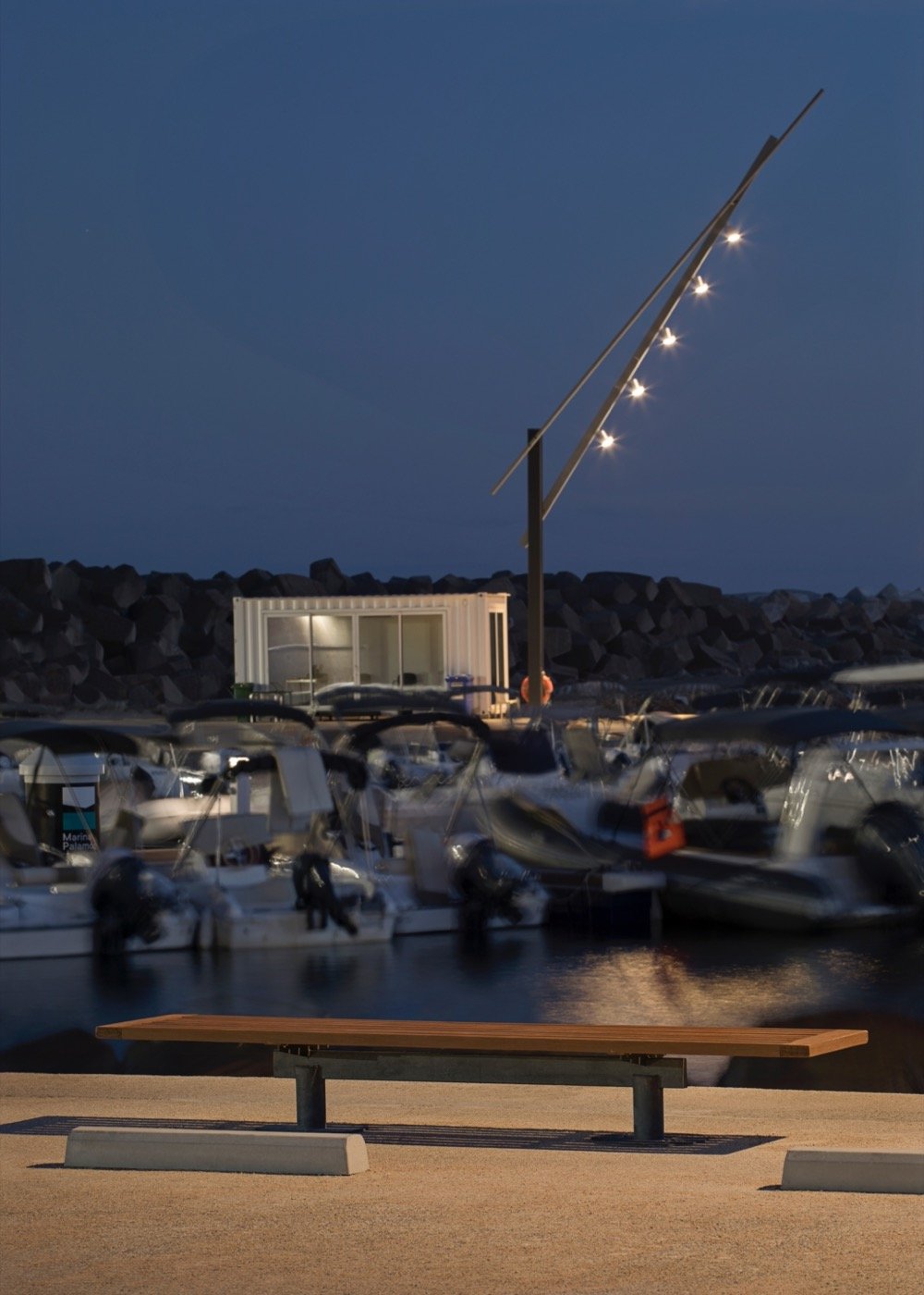 In 2005, initial comprehensive work was undertaken on the marina’s facilities, tackling, on the one hand, its functional optimization and, on the other, the start of the restoration of the landscape of the space. For this purpose, the team from the then Santa & Cole Urban Department, now Urbidermis, in close collaboration with the port’s management, developed an attractive project that was respectful both of the surroundings and the environment. It included elements of a high aesthetic quality, and the design of a serene, non-invasive lighting scene.
