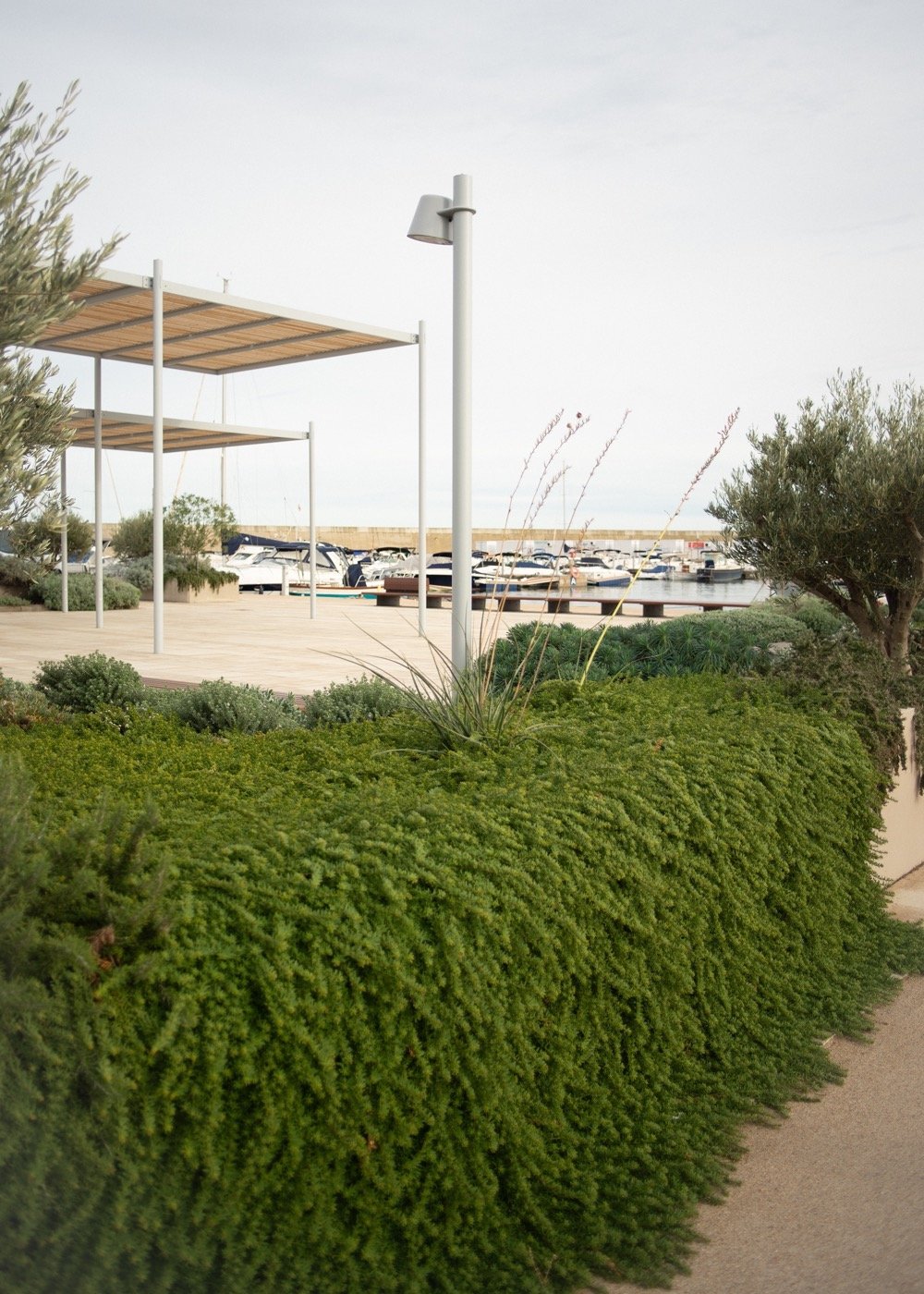 The Marina Palamós renaturalization project prioritizes maximum use of green spaces and suggests a relaxed overall image. Urbidermis & Belloch Forestal are getting to the heart of this port rejuvenation phase, providing, once again, a holistic urban perspective through lighting, furniture, microarchitecture and vegetation. Welcoming elements that look after the people walking along beside the sea.