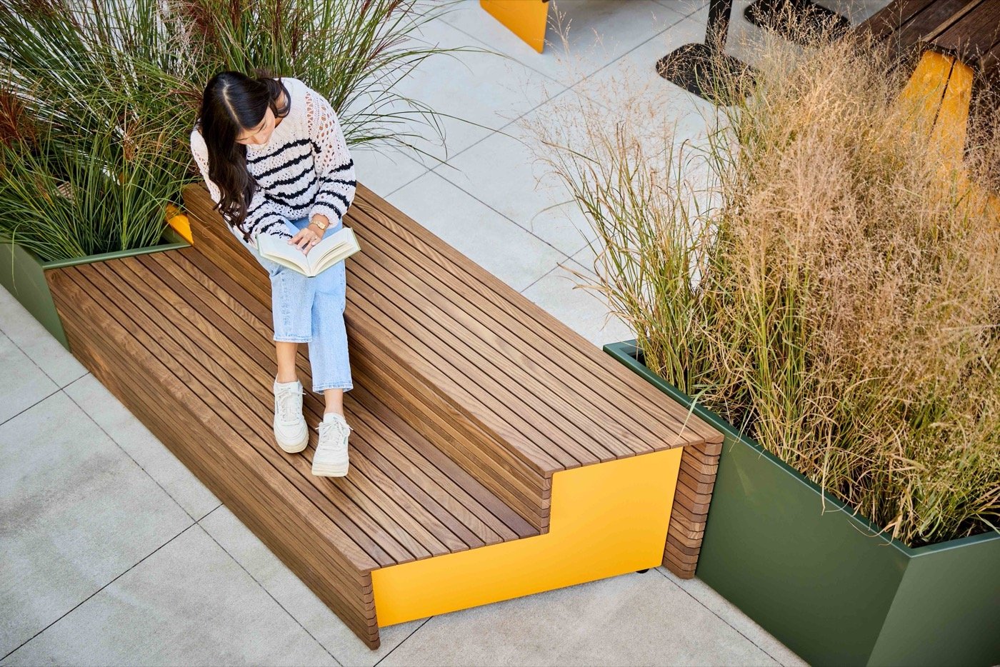 Recent additions to the system expand those possibilities even further. New planter and terraced seating modules bring biophilic texture and multi-level interaction into the mix, helping to carve out zones for semi-privacy, outline gathering spaces and support a wide range of postures — from upright seating to perching, stretching out or simply taking a moment to recharge.